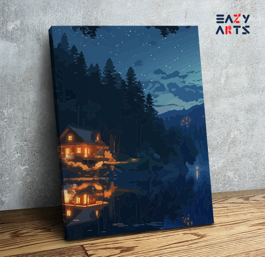 Starlit Cabin by the Lake Paint by Numbers Kit