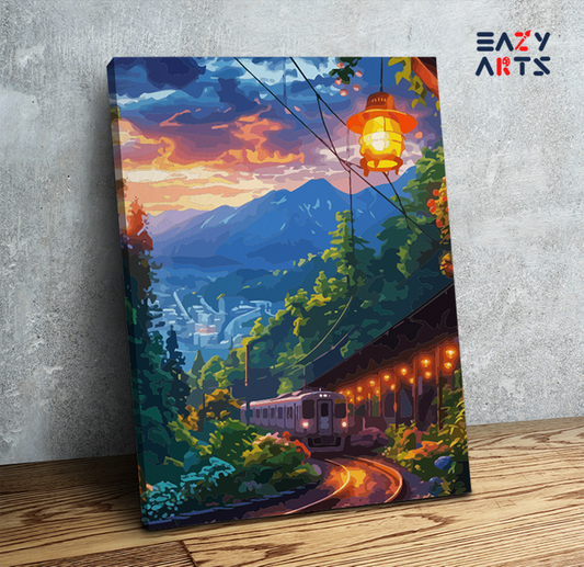 Sunset Mountain Train Ride Paint by Numbers Kit