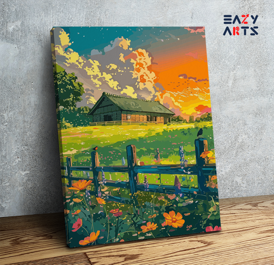 Sunset Cottage in Bloom Paint by Numbers Kit