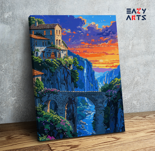 Sunset in Mediterranean Village Paint by Numbers Kit