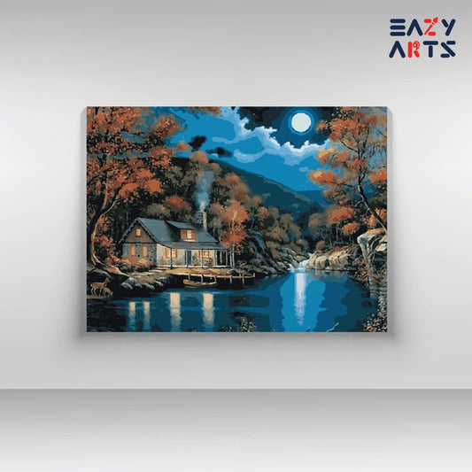 Alpine Lakeside Cabin Paint by Numbers Kit