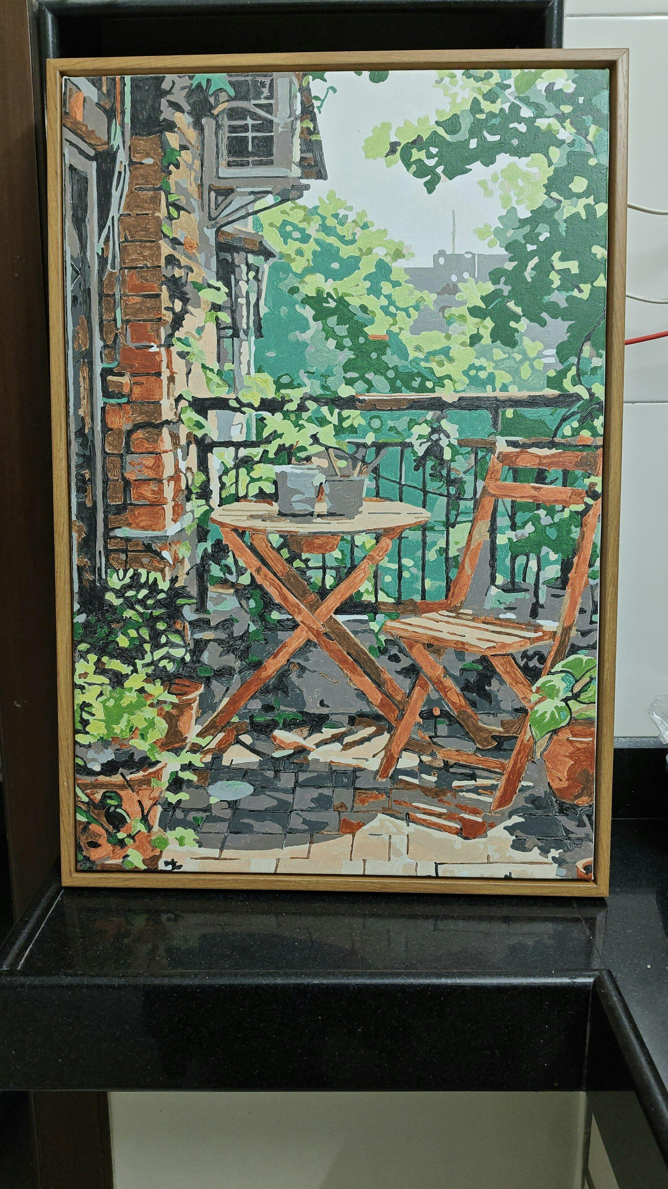 Transform a peaceful balcony scene into a beautiful work of art with this cozy balcony garden paint by numbers kit. Featuring a charming setup with potted plants, a wooden table, and a serene outdoor atmosphere, this kit allows you to bring the tranquility of a green retreat to life. Perfect for both beginners and experienced artists, this relaxing DIY project offers a sense of calm and creativity. Add a touch of nature and warmth to your living space with this delightful painting. Keywords: balcony garden painting, cozy outdoor art, nature paint by numbers, DIY garden painting, peaceful home décor.